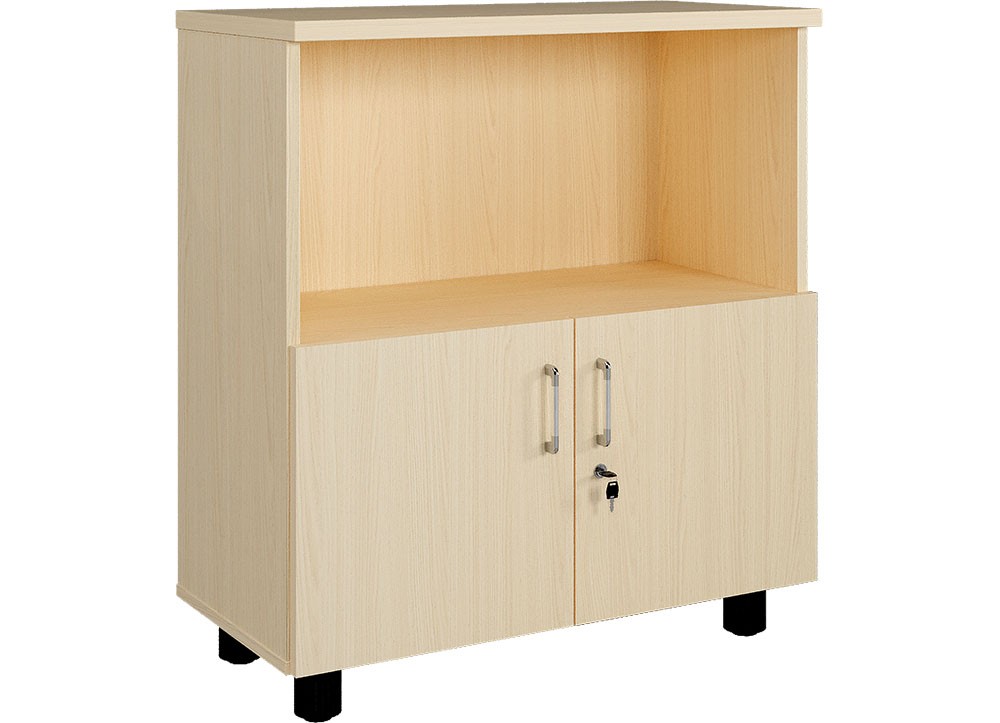 Tủ tài liệu thấp có 2 khoang để file, khoang dưới có cánh mở, chất liệu Melamine.